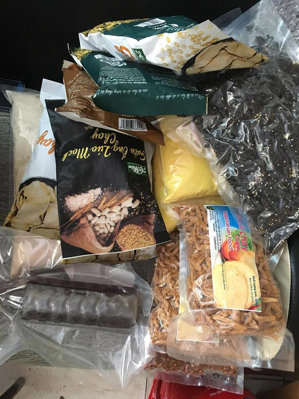 - Những mặt hàng xấy khô như khô cá, mục, gà, cơm cháy, nước ép, ngũ cốc, dầu, bột, bánh kẹo, mứt, chà bông