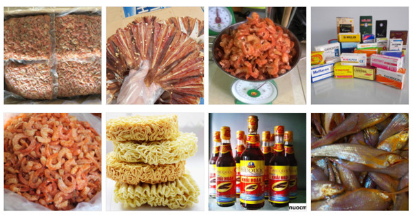 - Mắm các loại như mắm tôm, mắm tép, mắm cá khô, tinh bột, bột nghệ, yến sào, tỏi đen, chà bông, bánh kẹo, mứt các loại, khô các loại, đậu, hạt các loại, rau củ quả sấy,....
