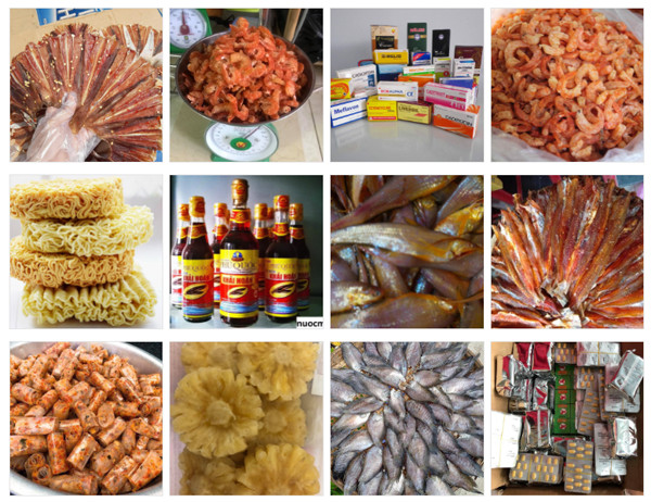 - Sản phẩm- thực phẩm gồm yến sào, bánh kẹo, cơm cháy, mứt các loại, bánh kẹo, bánh chưng, bánh giò, bánh tét, chả, mì, miến, bún, chè, bánh kẹo, mỳ tôm, cá khô, tôm, mực, ruốt, chà bông, rau củ, dầu, bột, ngũ cốc, khô gà, khô bò.