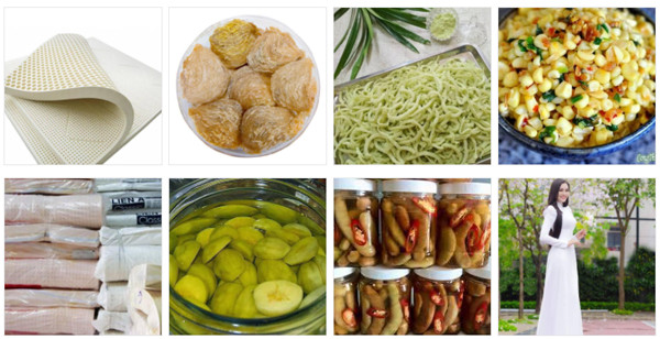 ● Các thực phẩm ở dạng khô, thực phẩm dạng nước, thực phẩm chế biến sẵn như rau củ quả sấy, mắm tôm, mắm tép, mắm cá khô, tinh bột, bột nghệ, yến sào, tỏi đen, chà bông, bánh kẹo, mứt các loại, khô các loại