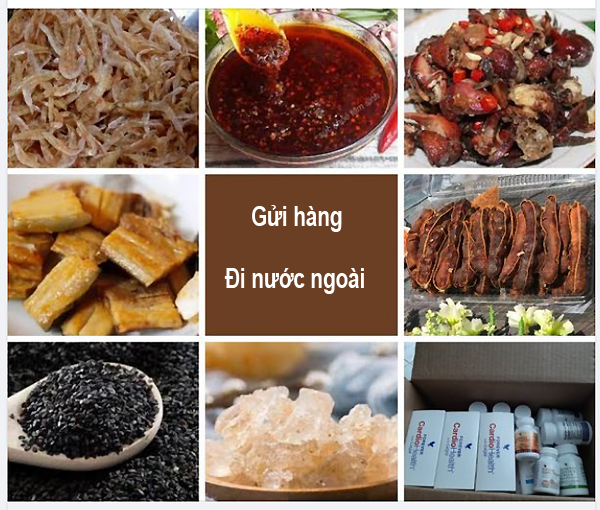 - Thực phẩm: khô (mực, tôm, cá, ... ), đặc sản, trà, cà phê, gạo, ...