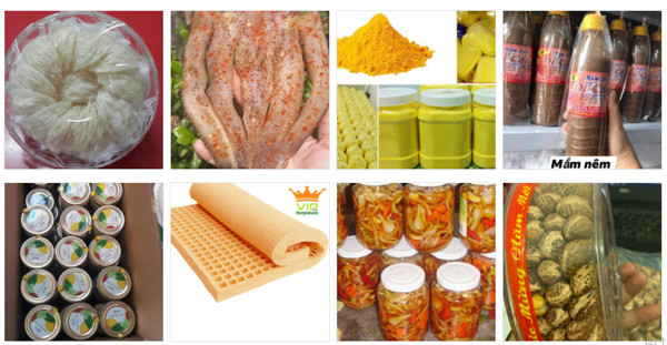 6. Nhiều sản phẩm lương thực đã qua chế biến như mắm tôm, mắm tép, mắm cá khô, tinh bột, bột nghệ, yến sào, tỏi đen, chà bông, bánh kẹo, mứt các loại, khô các loại.