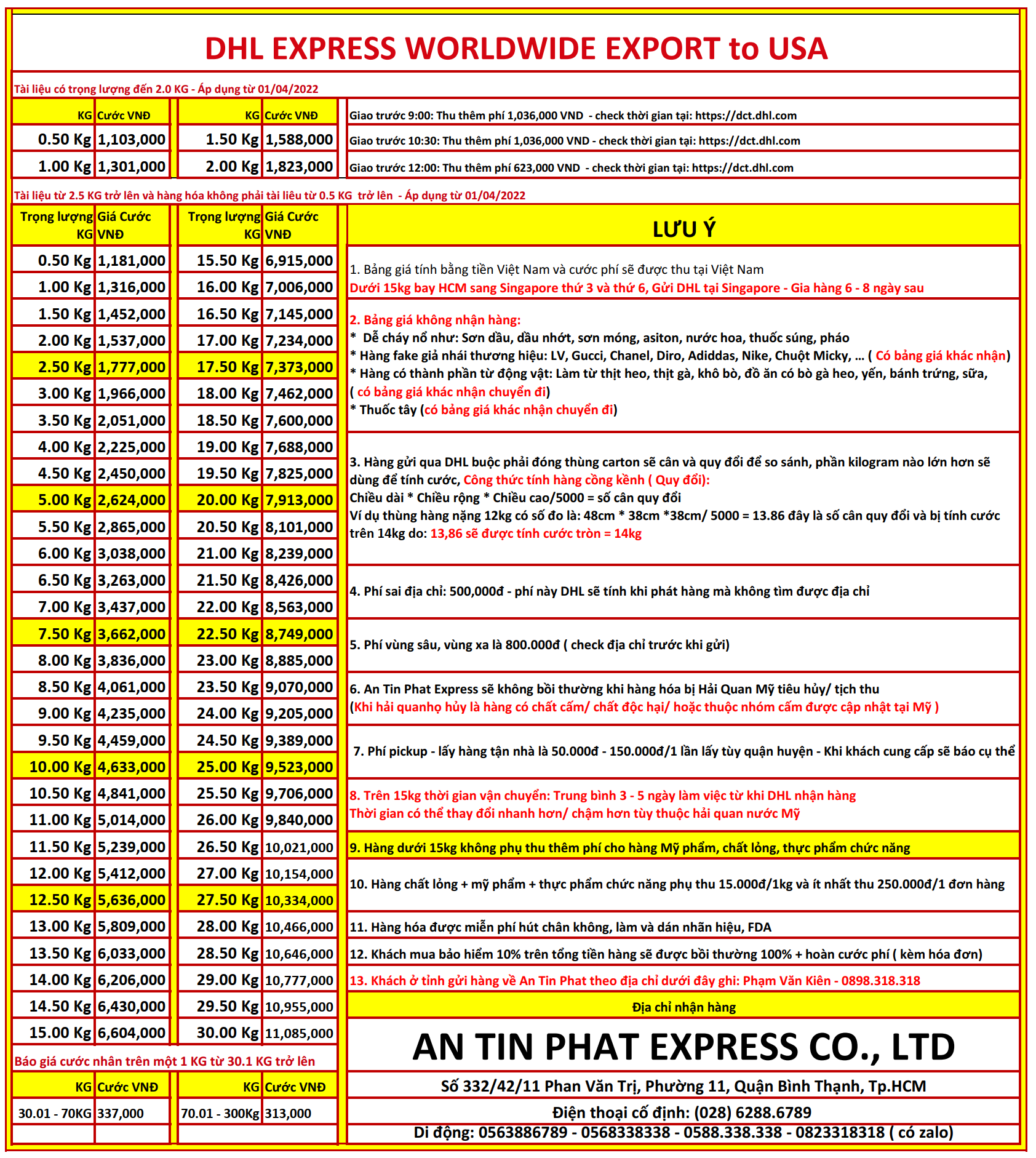 Bảng giá gửi hàng đi Mỹ tại Tp.HCM dịch vụ hãng DHL Express tại An Tin Phat Express